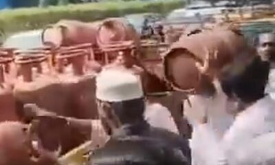 Crowd tries to grab LPG cylinders from moving tempo in Shaikpet