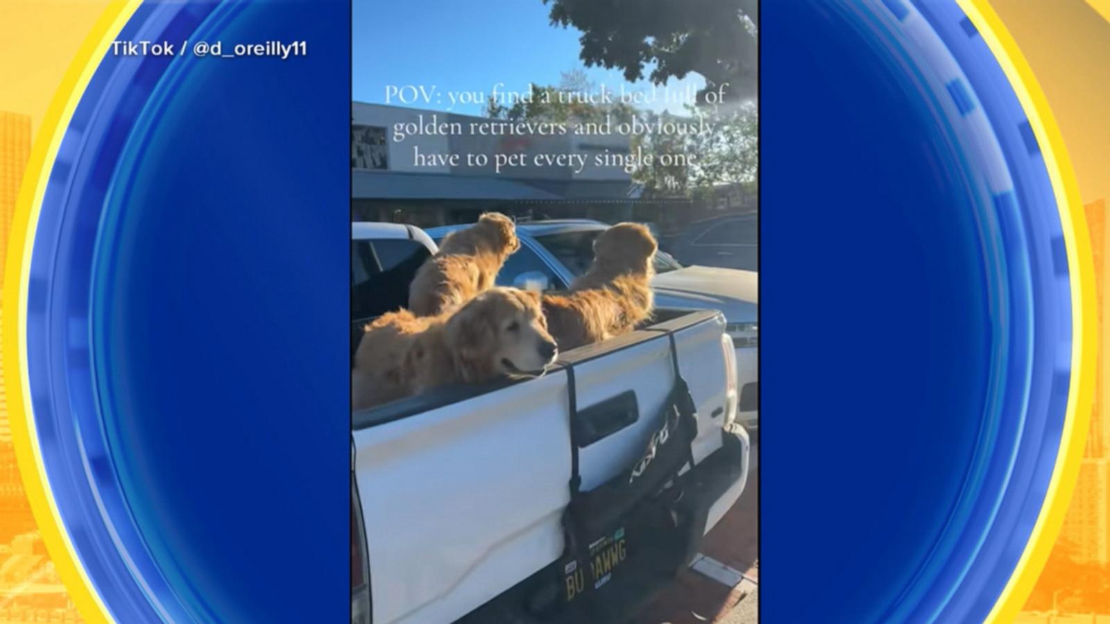 WATCH: Golden retriever trio shines bright at sunset