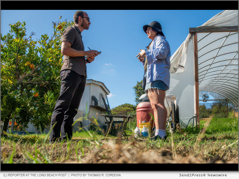 Image caption: A reporter at the Long Beach Post, now part of The LA Local, interviews a resident in Long Beach, CA. Photo by Thomas R. Cordova.