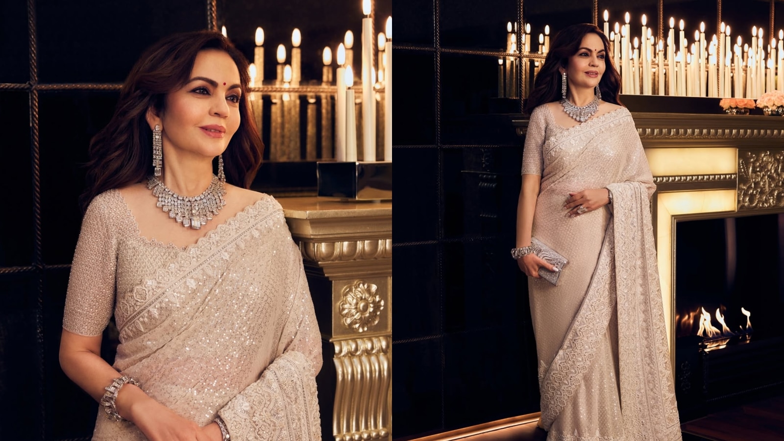 Nita Ambani dazzles in Abu Jani-Sandeep Khosla custom georgette sari, rare emerald-cut jewellery steals spotlight